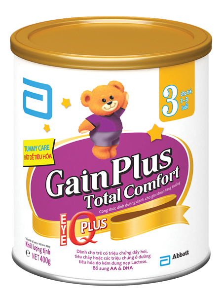 Gain Plus Total Comfort chứa hệ dưỡng chất Tummy Care thích hợp với đường tiêu hóa còn non yếu của trẻ, dễ dàng cho việc tiêu hóa và hấp thu dưỡng chất. Gain Plus Total Comfort còn chứa hệ dưỡng chất EYEQ Immunify gồm các dưỡng chất thiết yếu có trong sữa mẹ và sữa non giúp bé yêu có khởi đầu thật khỏe mạnh.
